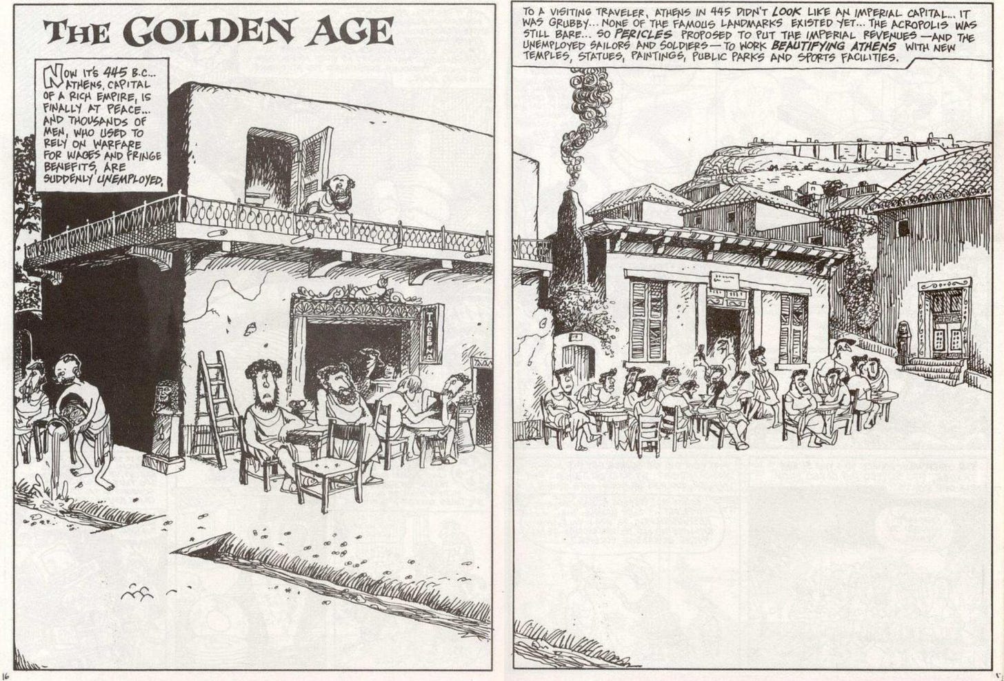 No one would ever read it for fun, and if they were forced to read it, as they were at school, the wouldn’t remember anything. Meanwhile, Gonick was piling provocative story upon provocative story, with fun anecdotes that my son and I would laugh about together.