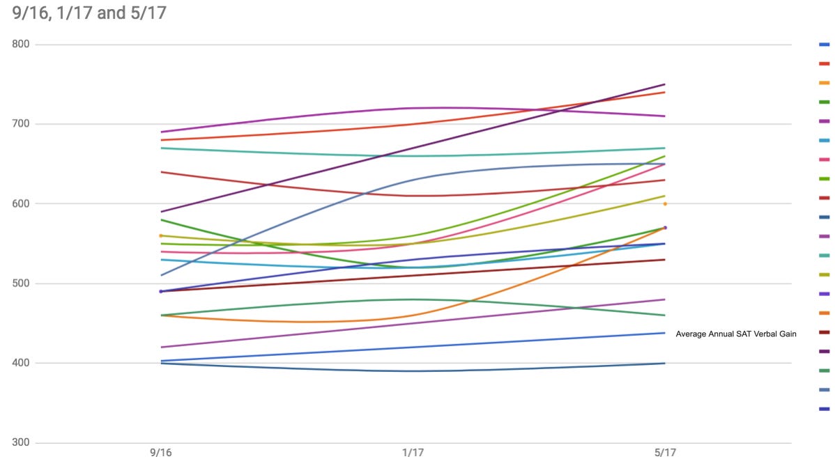 Morever, my consistent impression of classes that I’ve led is that those students who are most engaged are the ones who gain the most. Once I have the organizational bandwidth, I want to have guides pre-register which students are most engaged and then see if those students register higher SAT verbal gains.